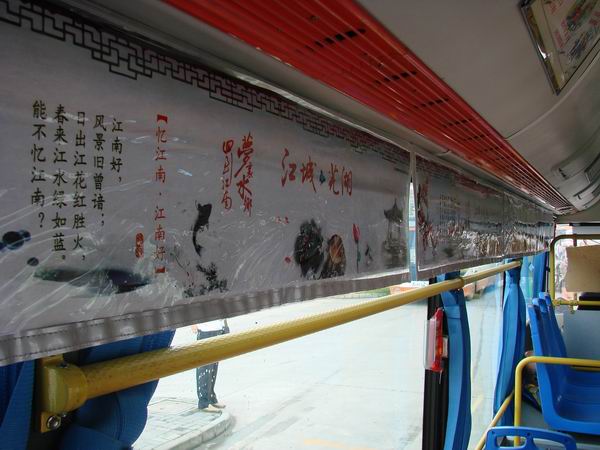 | 為進(jìn)一步深化“微笑服務(wù),溫馨交通”活動(dòng),蕪湖市運(yùn)管處在全市大力爭創(chuàng)2011年度全國文明城市的大背景下,搶抓機(jī)遇,在客運(yùn)、公交、出租車等行業(yè)廣泛開展?fàn)I運(yùn)客車靚化工程和車廂文化創(chuàng)建工作。