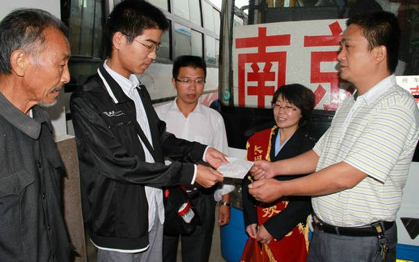 太湖分公司領(lǐng)導(dǎo)得知姐弟倆的情況后,隨即與考生所在鄉(xiāng)村取得聯(lián)系。決定從公司緊張的辦公經(jīng)費中解決姐弟倆大學(xué)期間的路費。9月10日是弟弟陳先義報道的日子,太湖分公司領(lǐng)導(dǎo)曹全龍同志代表太湖分公司全體汽運人親手將兩張?zhí)聊暇┑能嚻彼偷疥愊攘x同學(xué)手中,并鼓勵他們樹立信心,正確面對暫時的困難,好好學(xué)習(xí),以過硬的本領(lǐng)回報社會。受助大學(xué)生陳先義對太湖分公司的無償援助表達(dá)了感激之情。