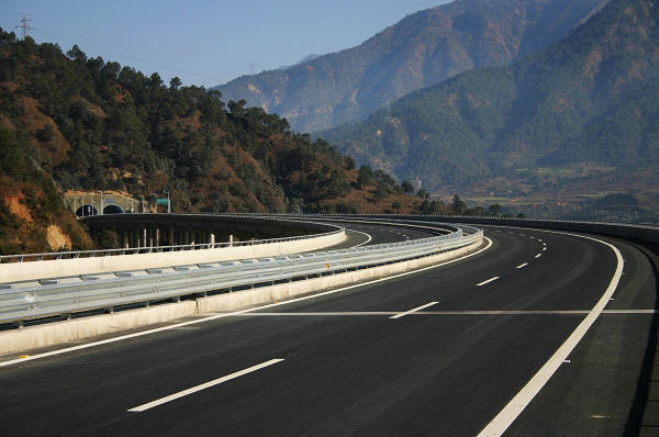 飛速車(chē)內(nèi)習(xí)習(xí)涼氣與車(chē)外秋初焦灼的熱浪形成鮮明的反差,此時(shí)此刻,我內(nèi)心真的不知道是燥熱還是涼爽?隨著車(chē)子漸行漸遠(yuǎn),不知不覺(jué)穿過(guò)了第一座高速隧道,這也是我首次經(jīng)歷的第一座公路隧道,隧道內(nèi)雖然不太明亮,但還是可以滿足正常通行照明的需要。因?yàn)槭鞘状瓮ㄟ^(guò)隧道,盡管不感到特別陰森恐懼,但還是免不了有點(diǎn)怯怯諾諾的失態(tài)之舉,此時(shí)的我立刻有種與世隔絕別樣的感覺(jué),似乎太像一位沒(méi)有見(jiàn)過(guò)太多世面的羞澀“孩童”了!同時(shí)也喟嘆人類(lèi)力量的偉大和巧奪天工的壯舉!正于一位偉人所斷言的那樣——上天可攬九月,在下可五洋捉鱉!可我還想補(bǔ)充一句——逢山可洞穿山神!從車(chē)窗遠(yuǎn)望去,那高聳云端的立柱橋蹬屹立在巍峨的群山叢嶺之間,架起一條高速‘玉帶’,我情不自禁地脫口而出——一橋飛架南北天塹變通途!