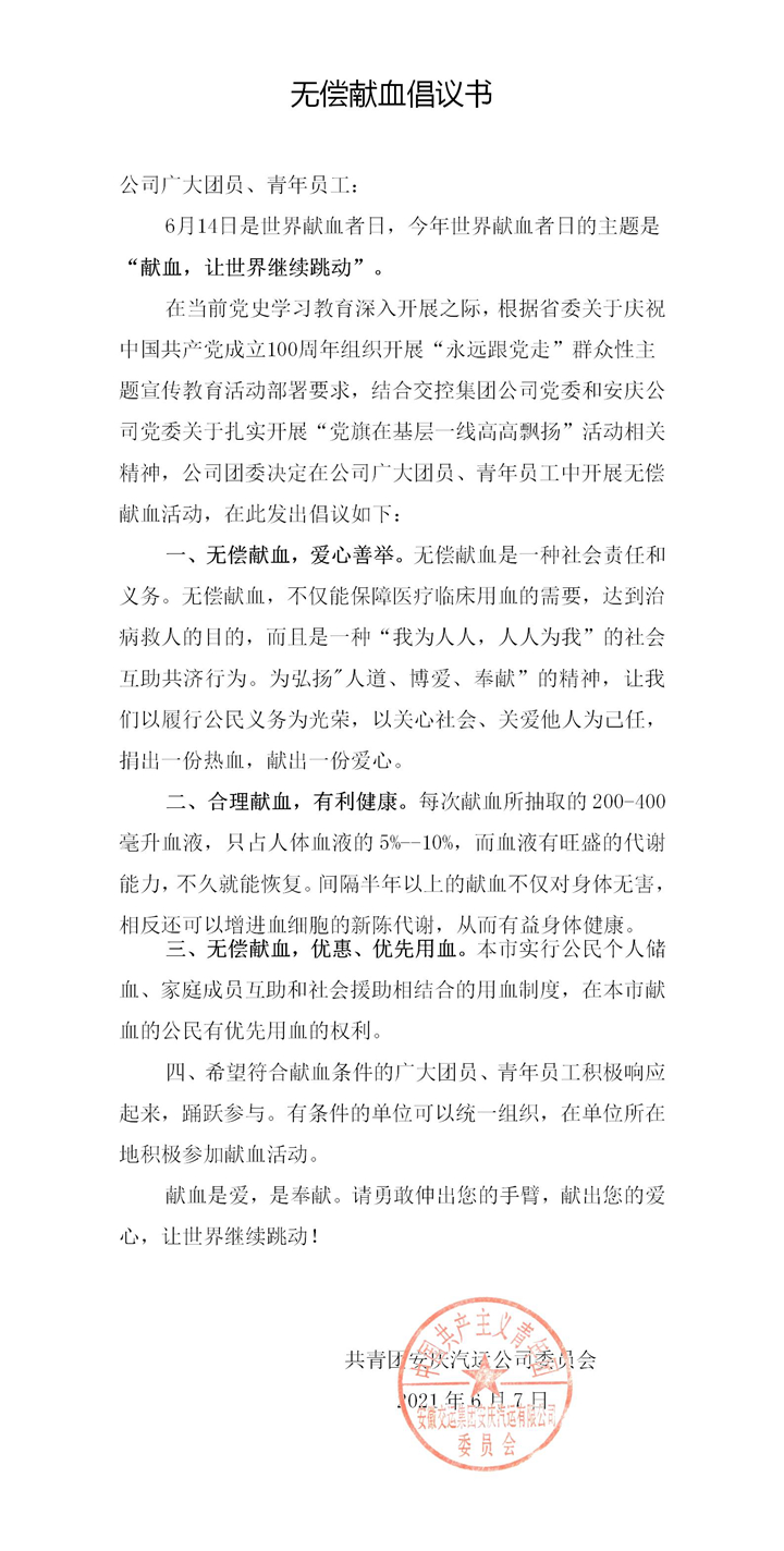 無償獻血倡議書