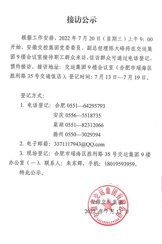 交控領(lǐng)導(dǎo)接訪告示